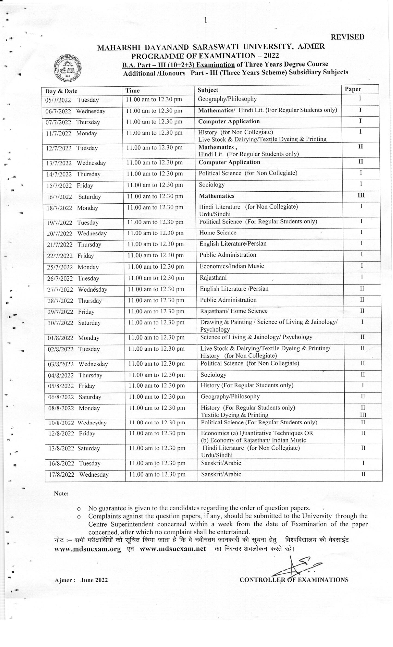 Time Table